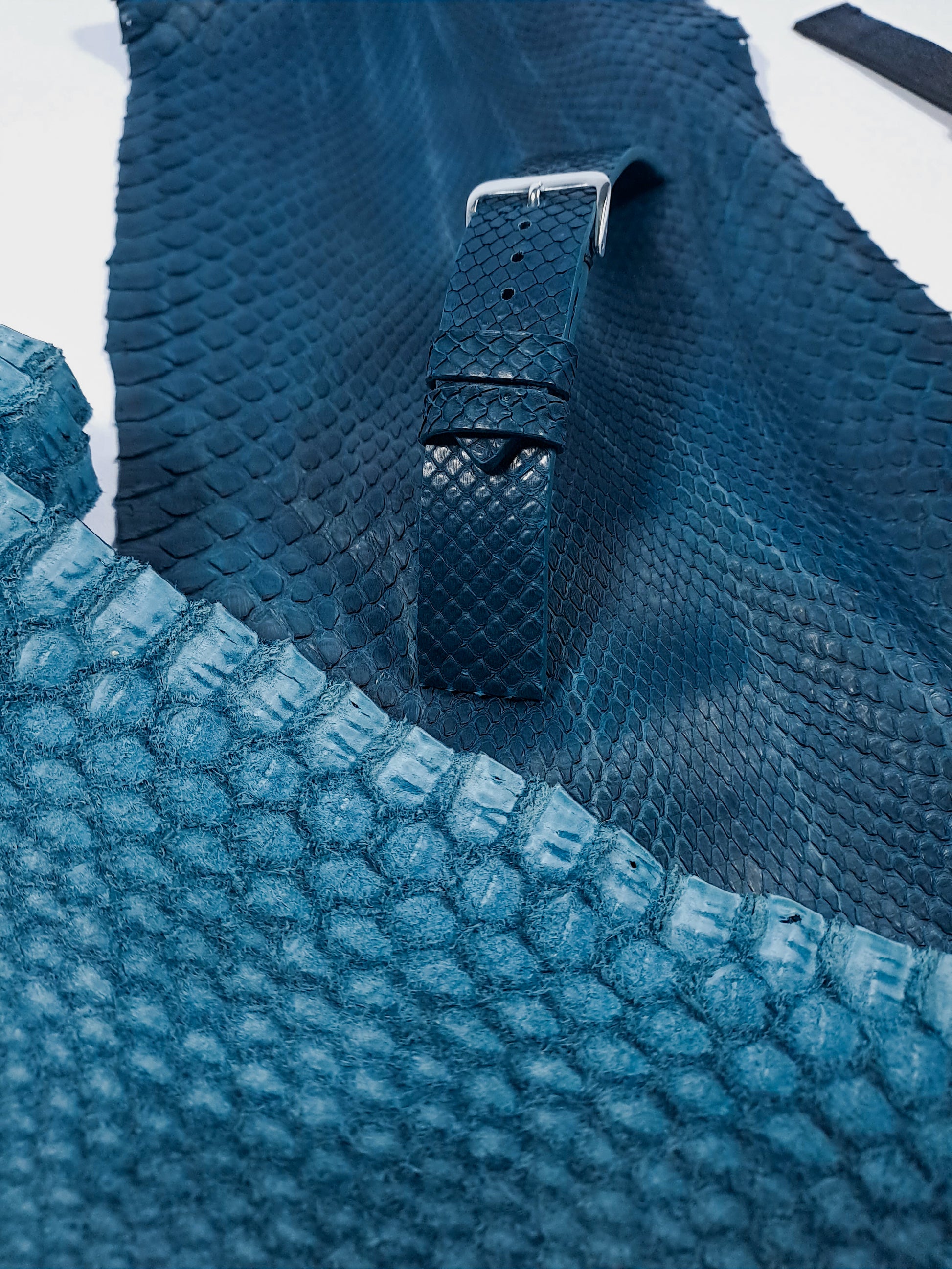 curea de ceas din piele de piton naturala tabacita chrom